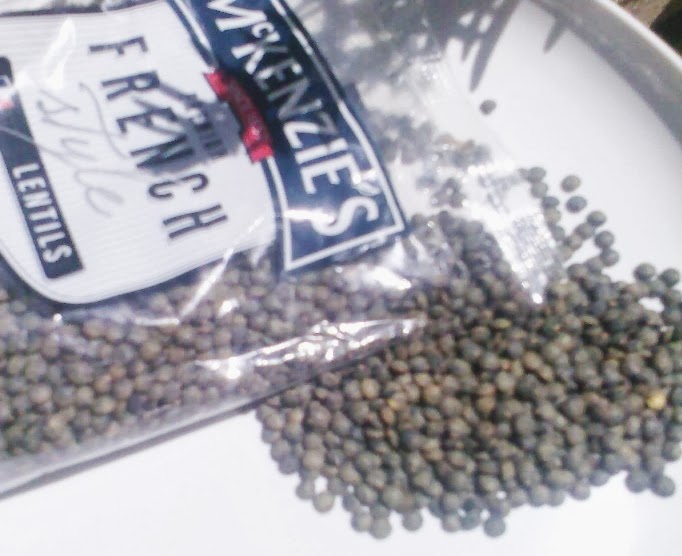 In the past year I have discovered french style lentils. Visiting France and skirting the area of Le Puy for which this style of lentil is famed makes me like them even more. Unlike most lentils which cook down to mush, these are small and round and hold their shape like tiny caviar balls. Indeed there is a 'caviar'salad you can make with them that is rather nice.